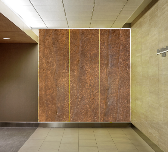 This sheet's stone originates from slatestone, boasting a satin surface with enhanced texture.