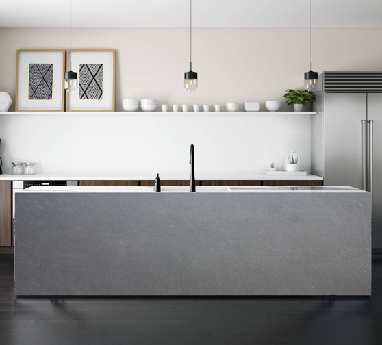 This sheet's stone originates from slatestone, boasting a satin surface with enhanced texture.