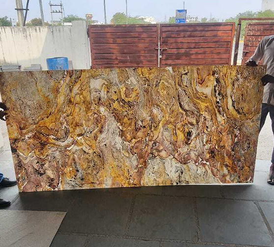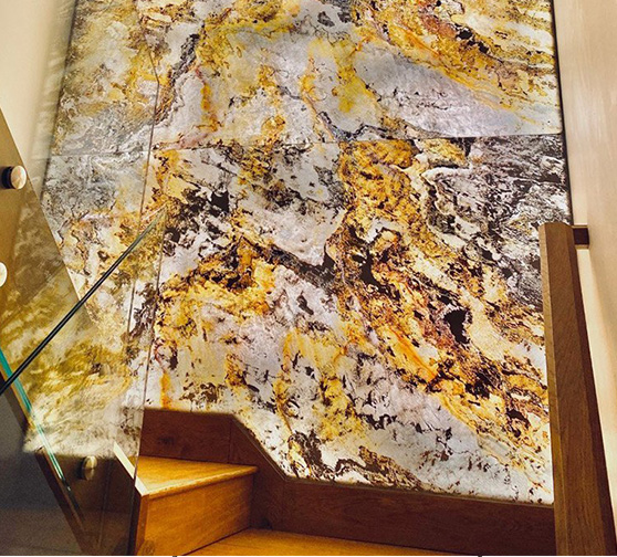 This sheet's stone originates from slatestone, boasting a satin surface with enhanced texture.